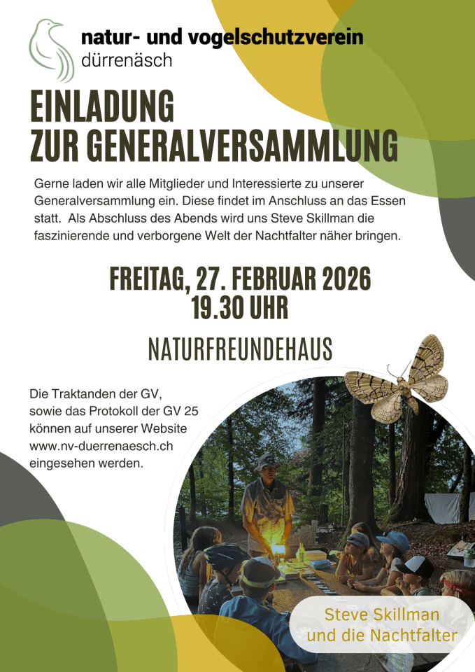 Herzlich laden wir alle Mitglieder und Interessierte zu unserer Generalversammlung am Freitag, 27.2.26 um 19.30 Uhr im Naturfreundehaus ein.