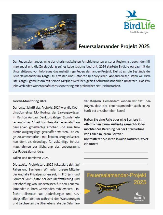 Für weitere Infos: www.birdlife-ag.ch/feuersalamander-projekt